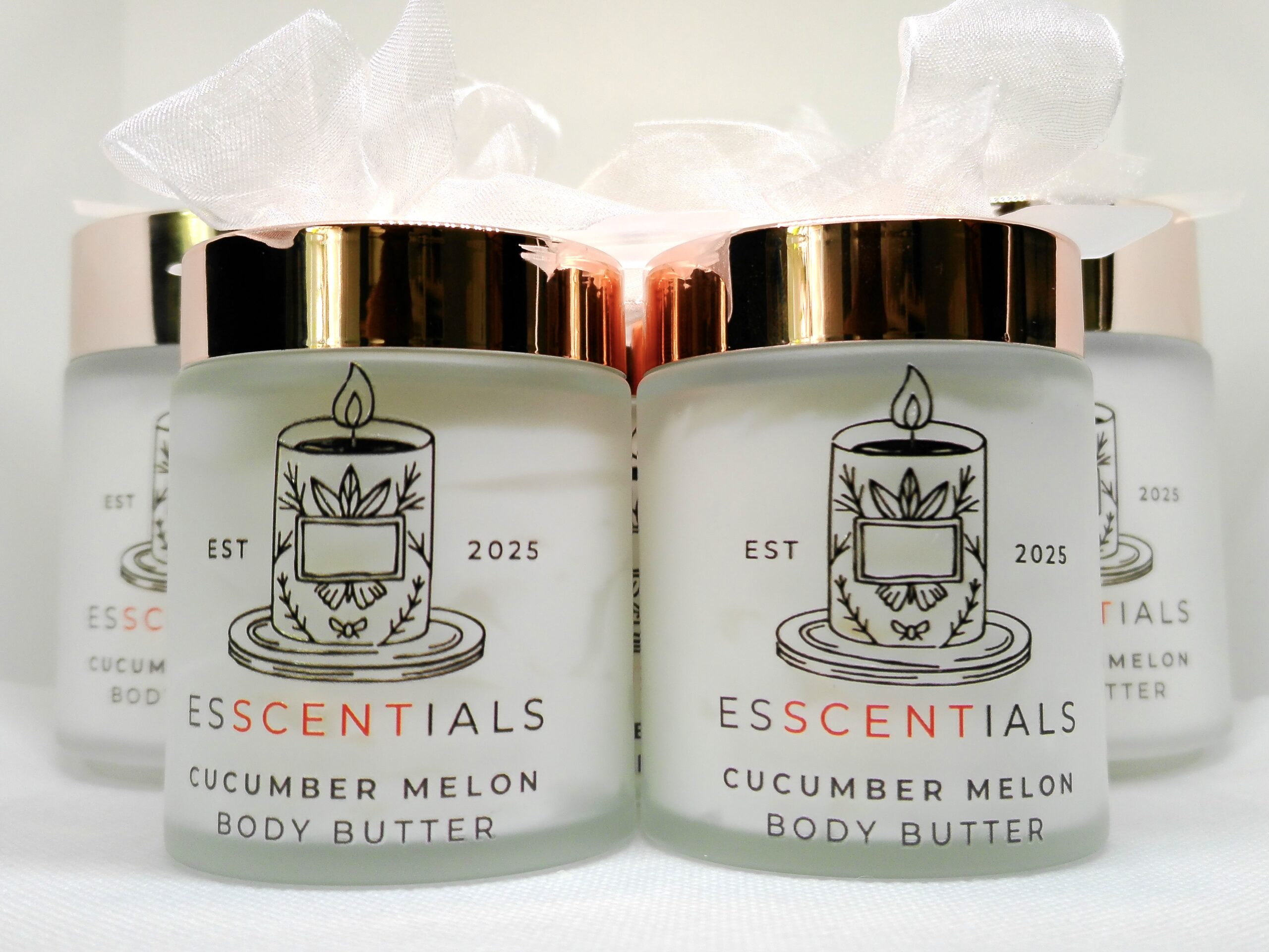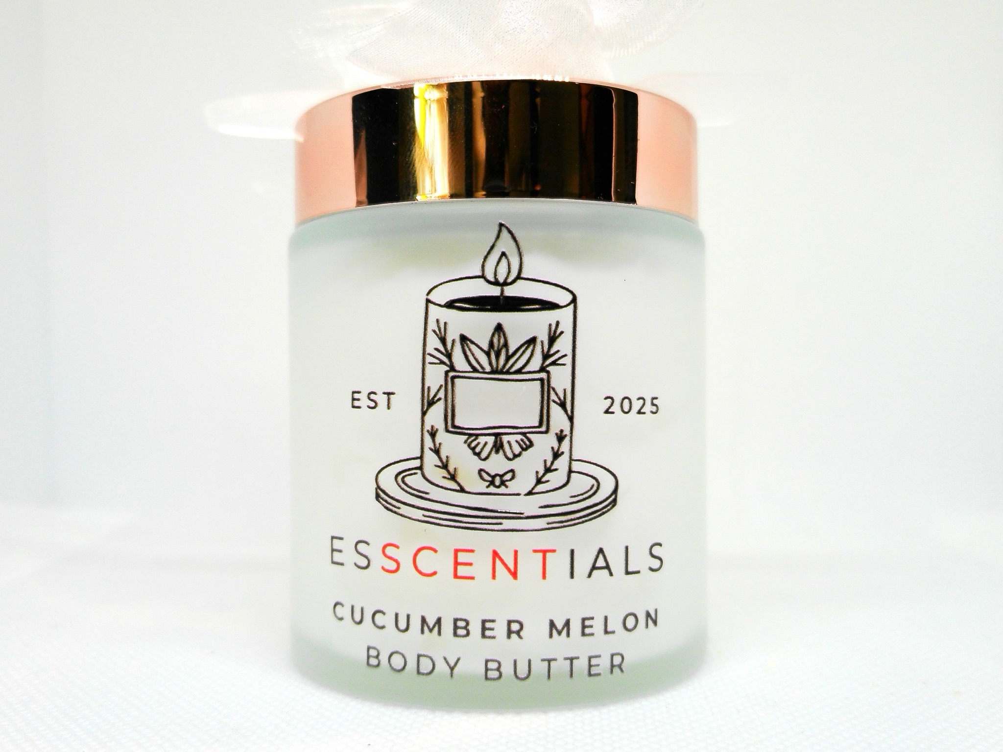 Indulge your skin with our Cucumber Melon Body Butter, beautifully packaged in an elegant 4 oz rose gold glass jar with a reusable spoon for easy, mess-free application. Infused with coconut oil, cocoa butter, shea butter, and jojoba oil, this rich formula deeply nourishes and hydrates while leaving your skin smooth and glowing. The crisp aroma of cucumber blended with juicy melon refreshes the senses, making it perfect for daily use.