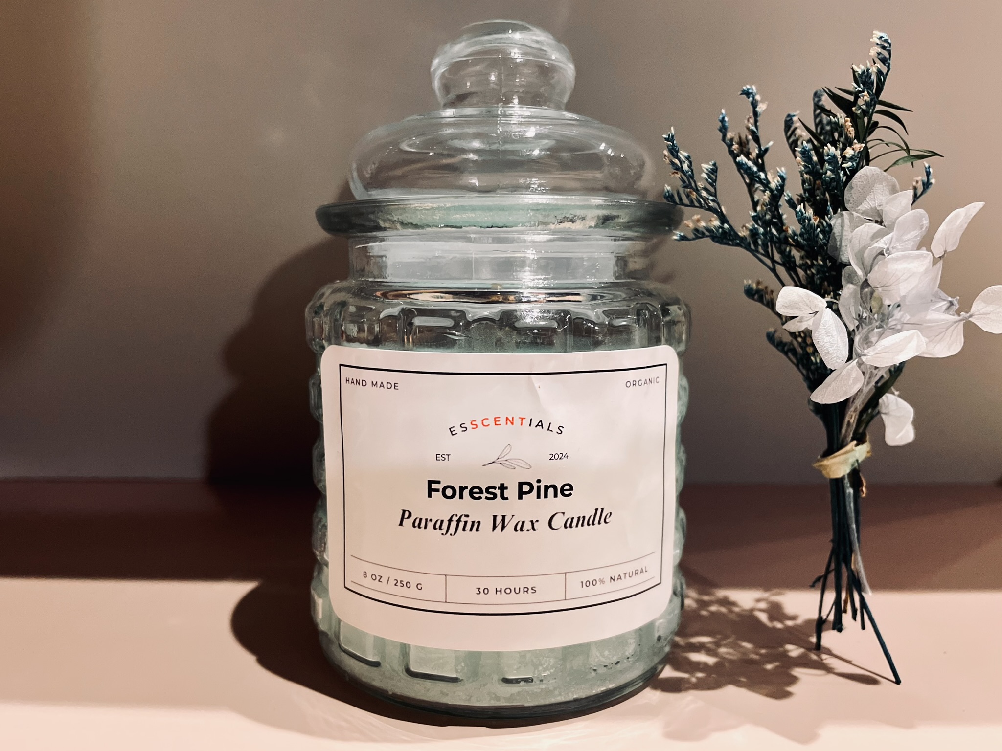 The cozy, earthy scent of forest pine and sandalwood, paired perfectly with a glass of mimosa. This candle, made with paraffin wax, fills your space with the warmth of nature.