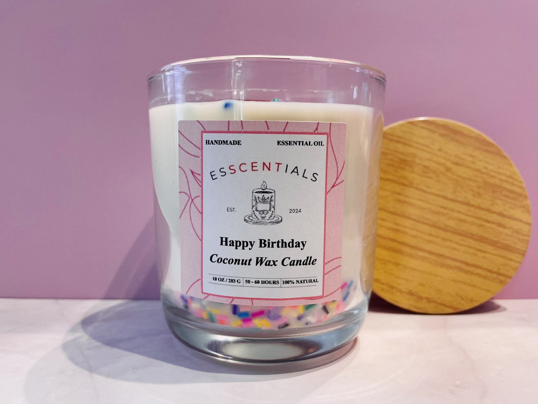 Celebrate special moments with our Happy Birth candle. Made from luxurious coconut wax, this candle exudes a joyful and uplifting fragrance that fills the air with happiness and warmth. Perfect for birthdays and other joyous occasions, it creates a festive and inviting atmosphere.