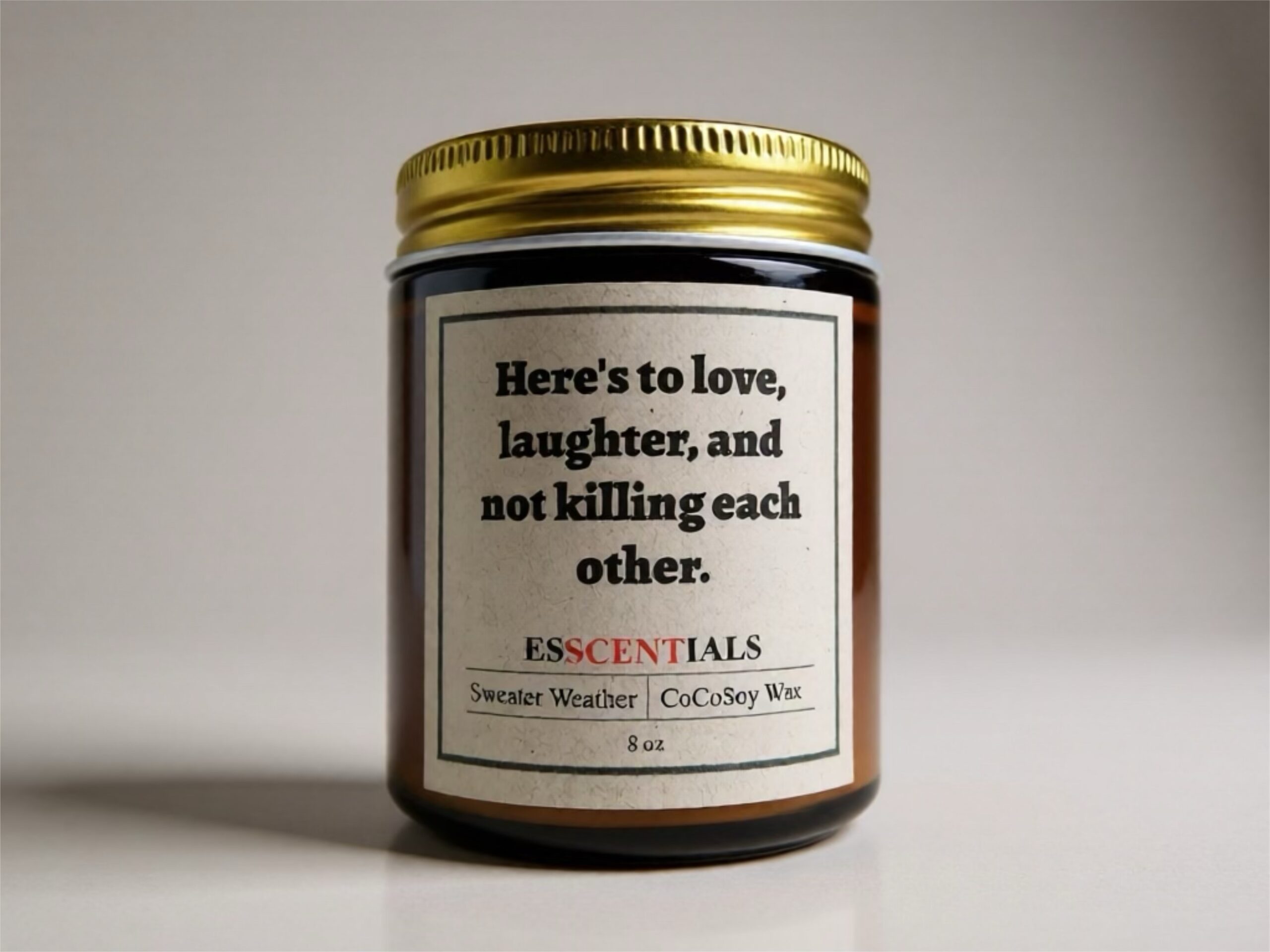 Our Sweater Weather Humor Candle pairs cozy vibes with a cheeky message perfect for couples (or roommates who test your patience). The fragrance is a crisp and refreshing blend of autumn air, eucalyptus, soft sage, and warm woods, wrapping the room in the comforting feeling of a favorite oversized sweater. It’s witty, cozy, and a perfect gift for anyone who appreciates love, humor, and a little survival spirit.