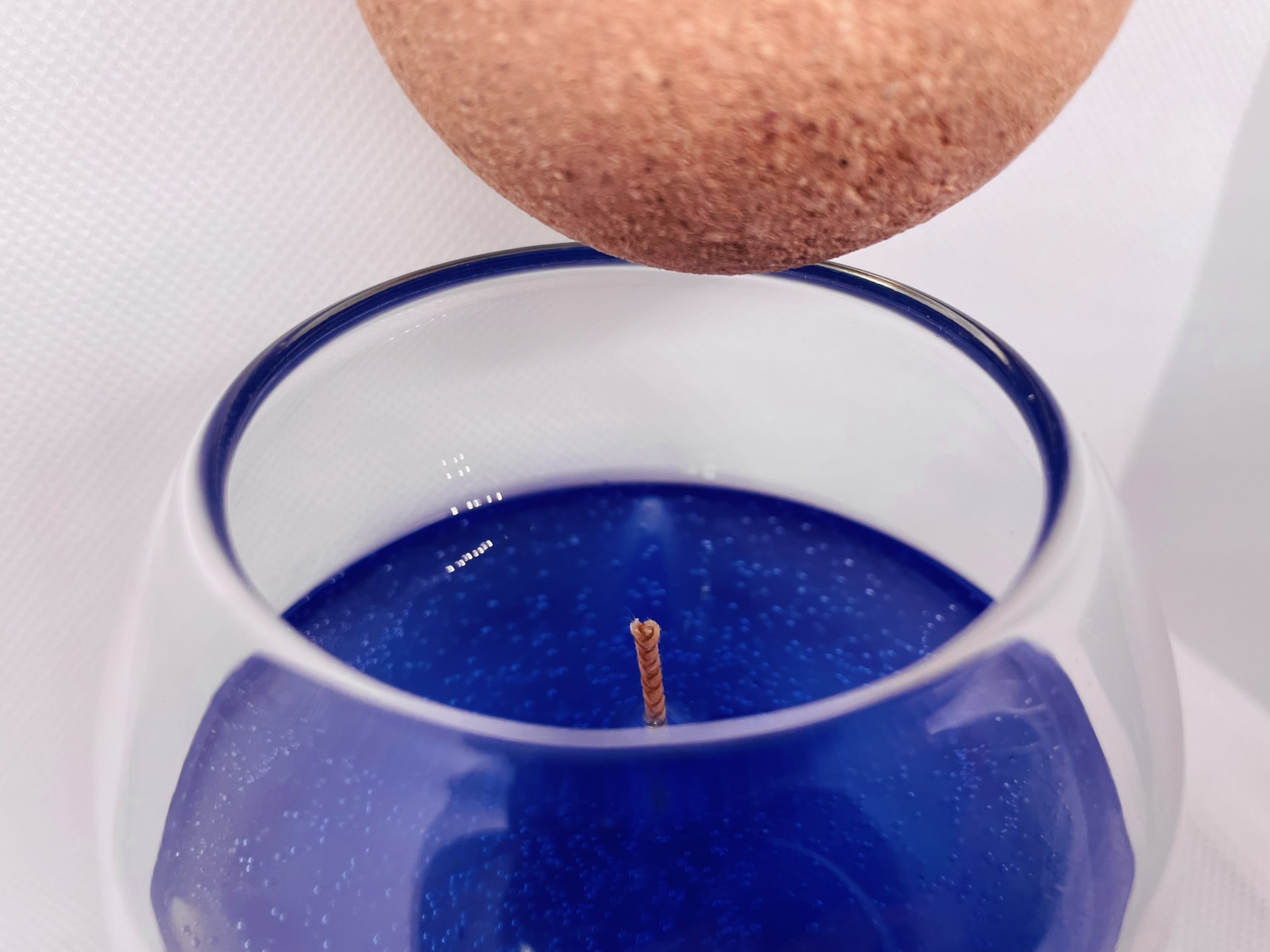 Only cover with cork lid once the flame is fully out and wax is cooled.