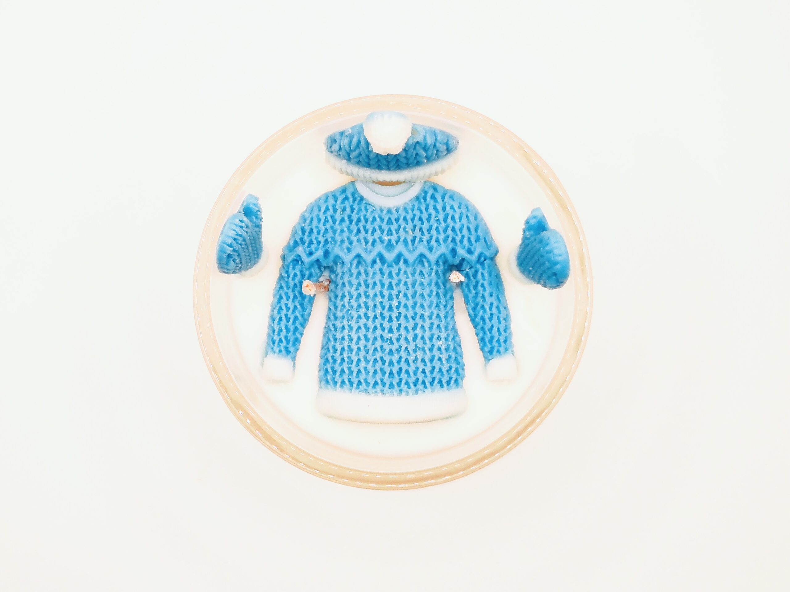 All sweater-themed embeds are made of wax and safe to melt into the candle.