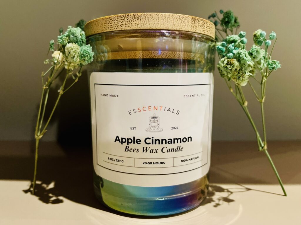 Immerse yourself in the cozy blend of Apple and Cinnamon with this natural Beeswax candle. Ideal for creating a warm and inviting ambiance at home.